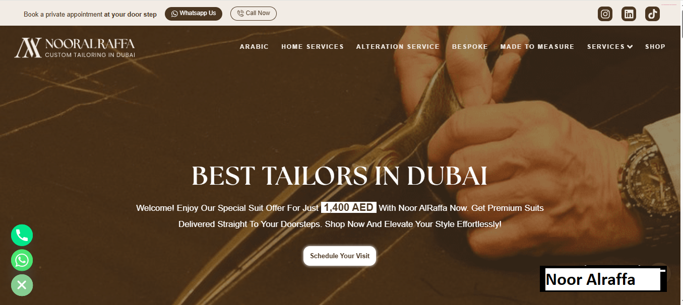 Noor Alraffa specializes in bespoke tailoring and custom-made suits for premium clientele in Dubai.